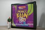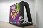 This custom-designed inflatable movie screen for Radio Disney has a detachable cover -- a great, dual-purpose addition that caught visitors’ attention! Commercial grade movie screens are easy to install. Simply plug in, turn on the blower and up comes the giant inflatable screen.