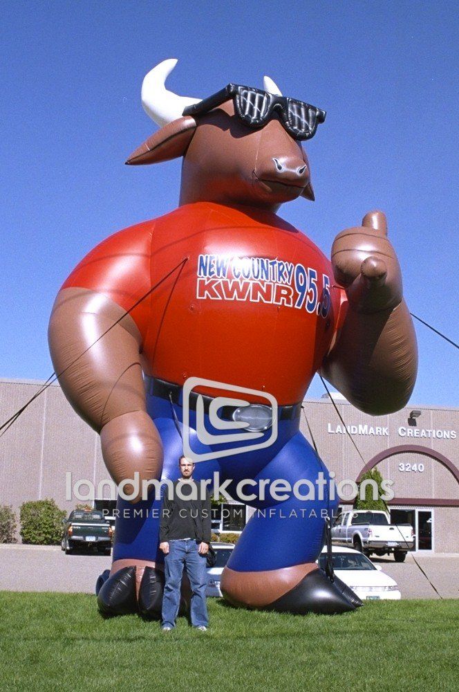 Las Vegas' country music station, 95.5 KWNR, inflates their bull mascot complete with shades! at a variety of entertainment events, outdoor concerts and radio remotes.