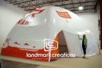 This inflatable sports dome is used as a "pit stop" and retail area for Ragnar Relay Series, an overnight team running event. The custom-designed inflatable dome offers lots of space for merchandise and for participants to take a much needed break!