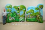 Understanding Wildlife, a program to bring tropical animals and the rain forests preservation to life, uses this inflatable as a backdrop at grade school presentations.