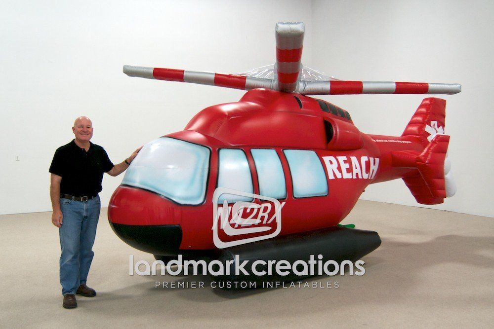 To promote their new membership program, REACH Air Medical Services used a large, cold-air inflatable helicopter. The inflatable was well received at trade shows, parades and community events; including the Sand Sport Super Show in 2010.