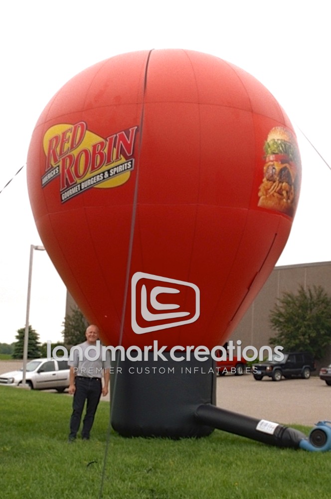 Red Robin Restaurants uses their custom inflatable balloon shape to increase visibility and expand brand recognition. Hungry consumers can't help but take notice when a Red Robin burger is printed directly onto a giant inflatable hot air shape!