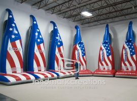 Show your American spirit with custom inflatable product replicas like these. With a patriotic flag designs these giant inflatable vacuums attract attention both indoors and outdoors.