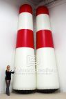 Ryerson University's school of Faculty of Engineering and Architectural Science inflated these 20-foot pylons for a radio-controlled plane air-racing event. Students will race and maneuver miniature planes between the inflatable pylons!