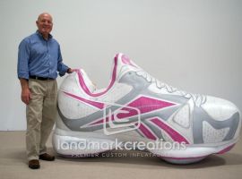 Product replicas, like this Reebok RealFlex shoe, are custom built to look like an exact reproduction of the product. Shoe replicas add an attention getting display to racing events, trade shows and even the biggest of fitness conventions!