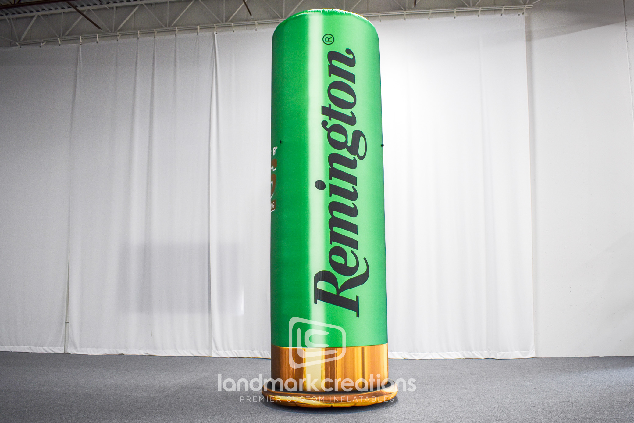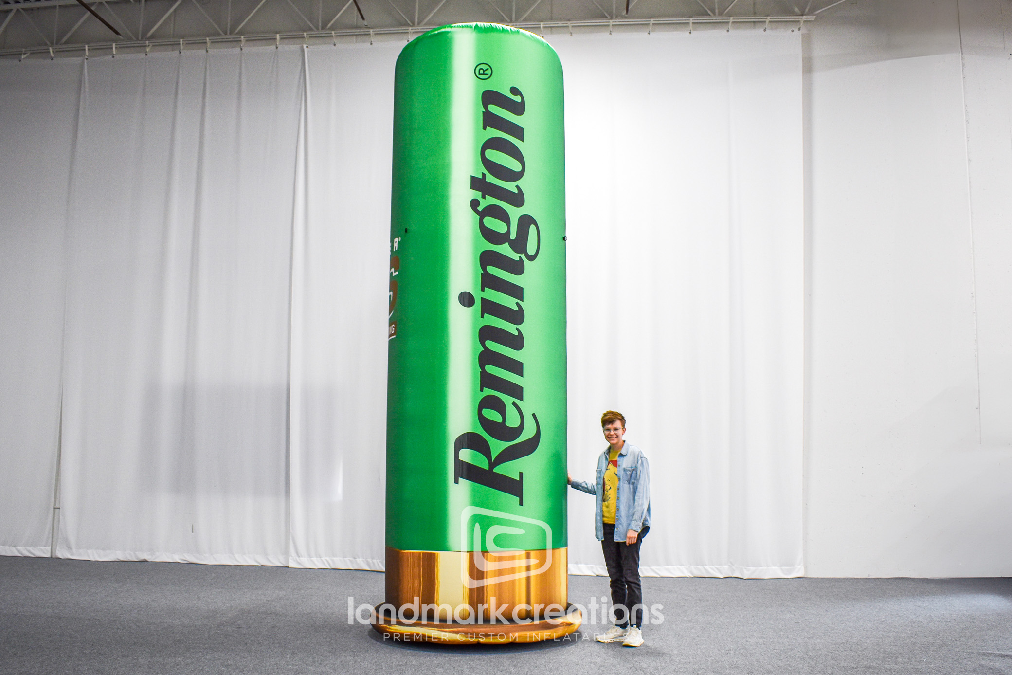 Remington Arms promotes brand awareness at consumer events using a giant inflatable replica of its signature green shotshell. Need to promote your product or brand at events? Inflatables create a giant visual impact, and because they pack small, they're easy to transport and store between events.