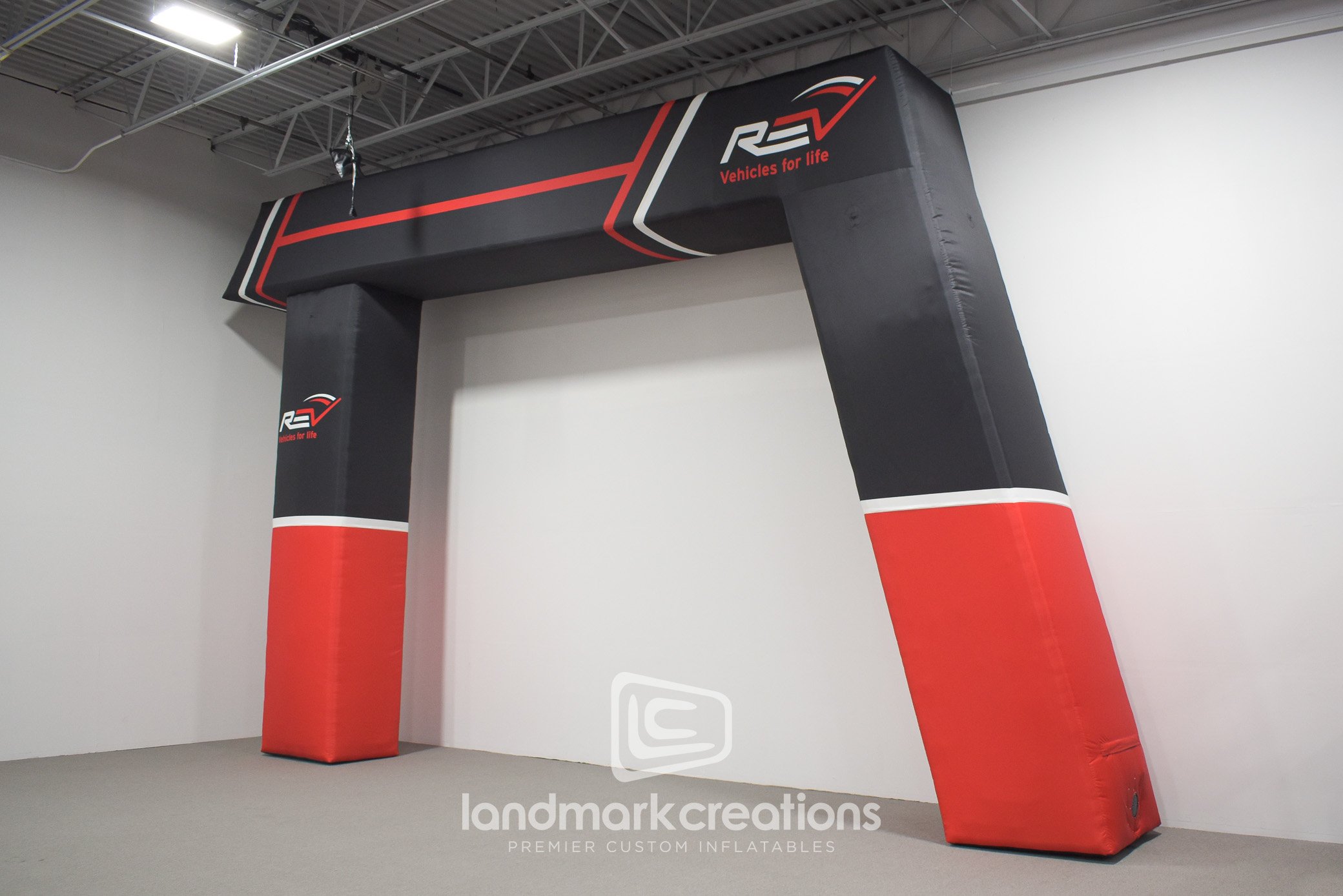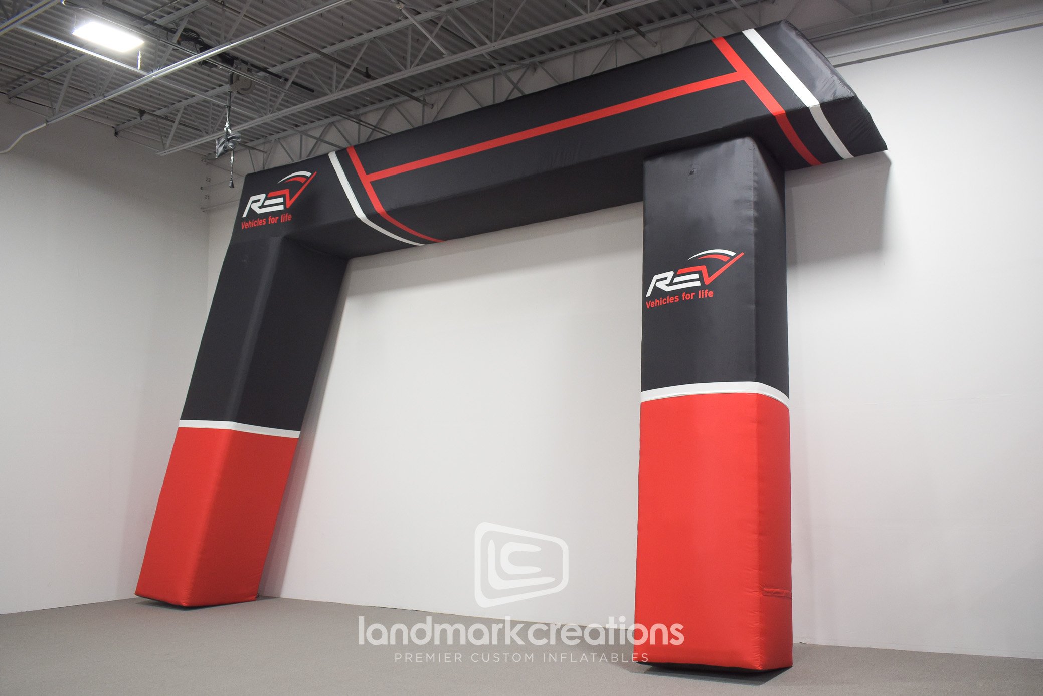 REV Group created a giant inflatable arch for their REV Group Grand Prix event as part of the company's employee summer party. Custom inflatable arches create instant visuals and can be designed to match any theme. They're also easy to set up and they pack small, so they can be stored easily between events.