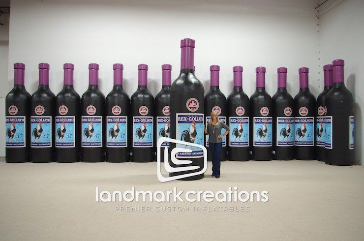 Rex Goliath Wines stand out in crowds at festivals and fairs with their bigger than life inflatable Cabernet Sauvignon wine bottle replicas.