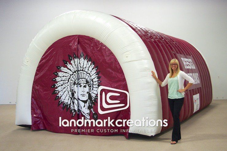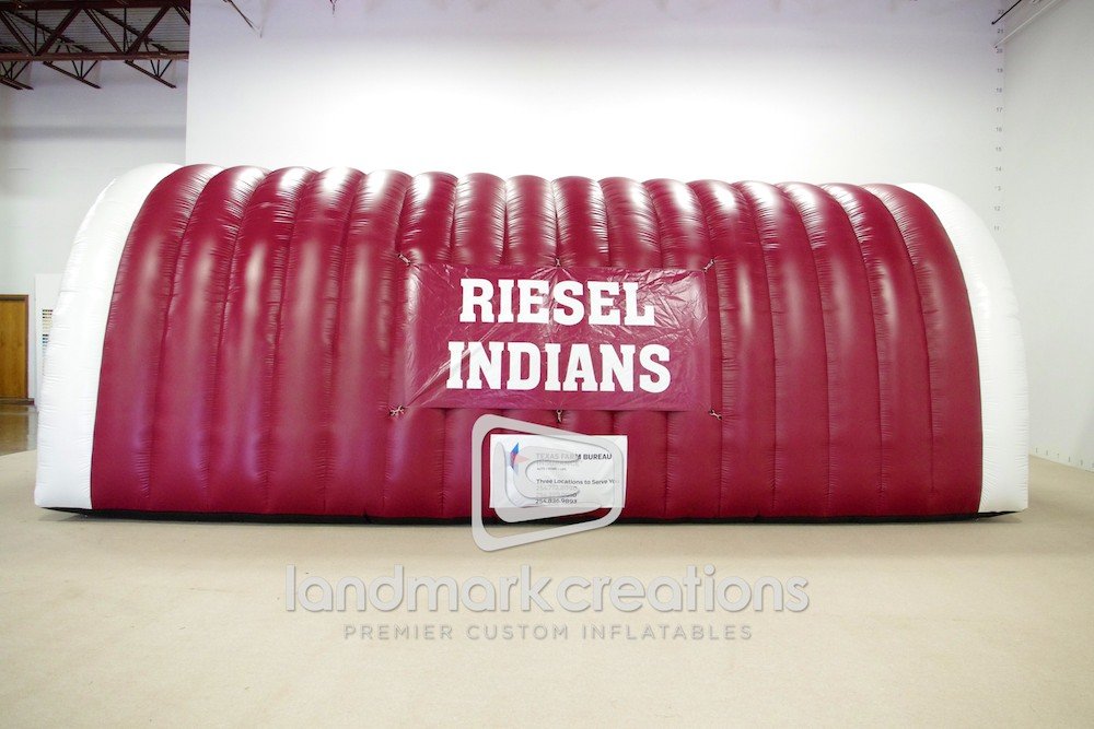 The Riesel Indians football team powers through this custom inflatable tunnel and onto the field at home games! Traditional sports tunnels are affordable and accommodate standard banners for sponsor messages, appealing to businesses that are considering a partnership with the team.