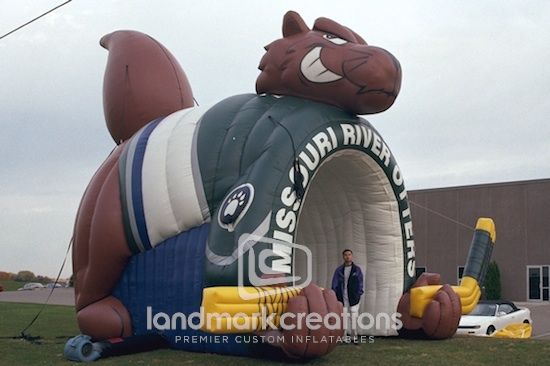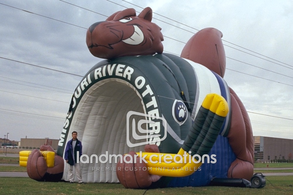 The Missouri River Otters used this giant inflatable otter sports tunnel to get hockey fans on their feet during player introductions!
