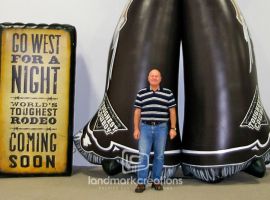 Welcome customers to your event with a giant, friendly mascot inflatable. This cowboy for the Hugo PRCA Rodeo heightens the spirit at events and makes a great photo opportunity that rodeo fans will want to share.