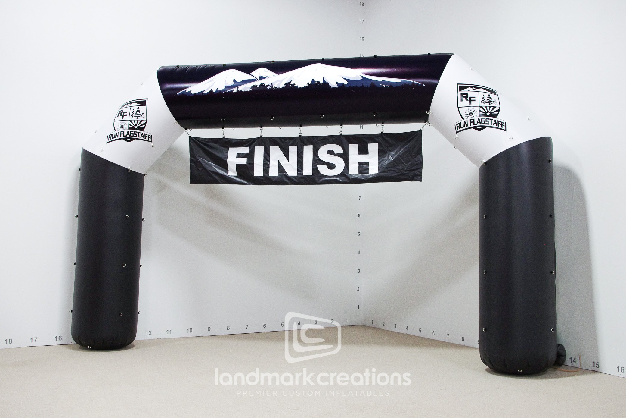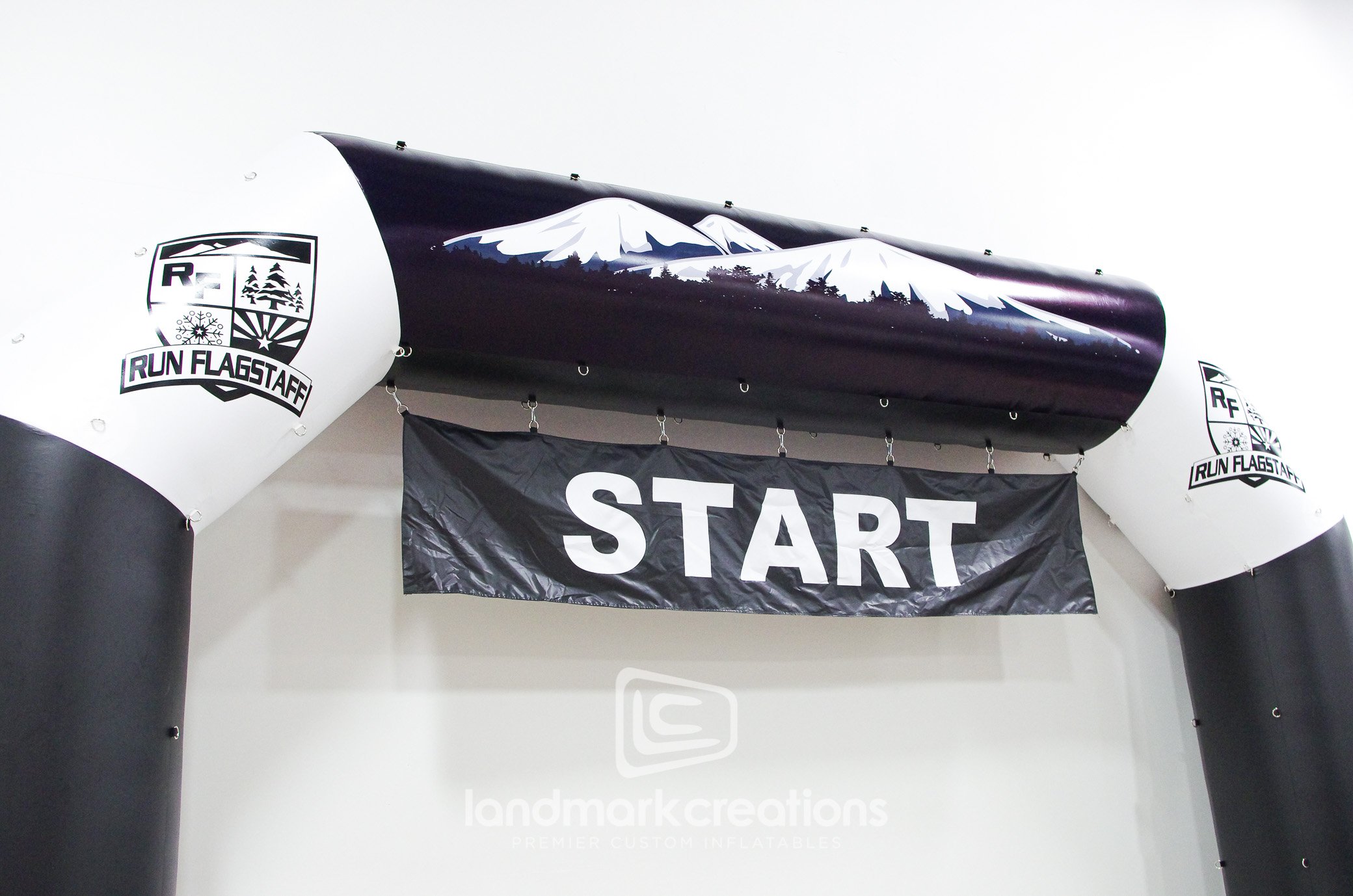Run Flagstaff, a running company in Arizona, uses this inflatable start and finish line arch for sporting events and races. The arch’s sturdy D-ring fastenings allow the banner to be changed out for future events.