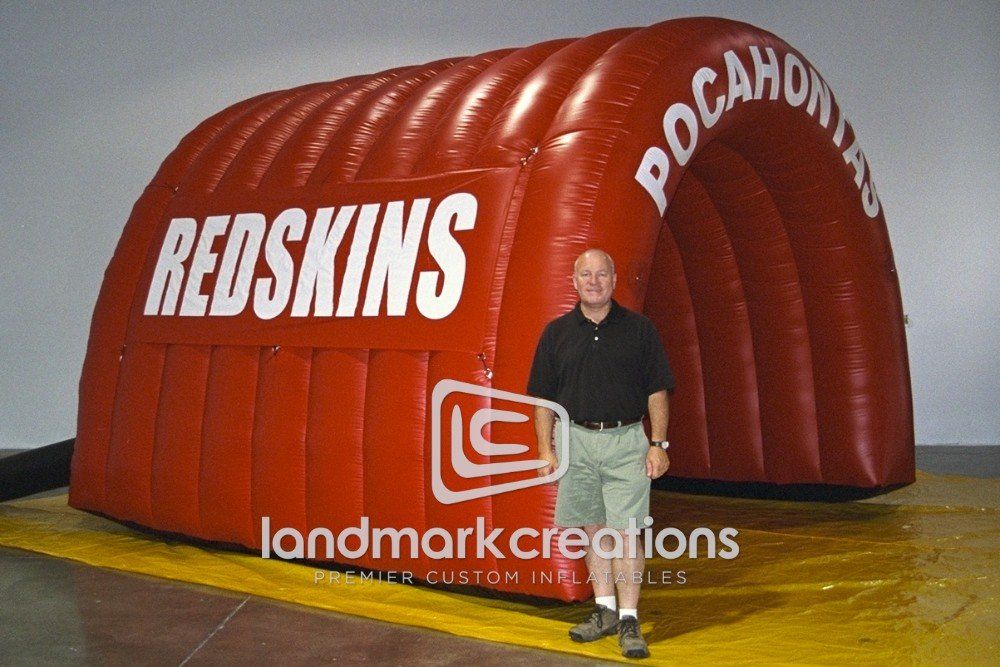 The Pocahontas Booster Club purchased this inflatable sports entrance tunnel for the Redskins football team. Custom football tunnels increase school spirit and attract attention when the team rips onto the field!