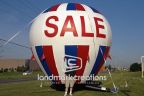 Inflatable hot air shapes, like this giant red-white-and-blue balloon, are hard to miss! This inflatable balloon easily draws consumers to your location during sales events.