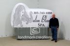 Salon Blano Spa's custom inflatable billboard uses their black and white color scheme to reinforce the brand logo. The billboard displays their phone number for an immediate call-to-action.