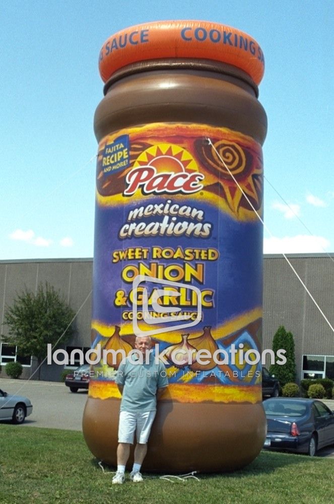 Pace salsas used their giant, 18-foot-tall inflatable bottle replica for the product launch of their new mexican creations sweet roasted onion & garlic cooking sauce.