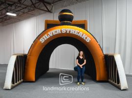 This 40-foot long rattlesnake sports tunnel for San Marcos High School is designed with great detail and is sure to intimidate their opposing teams. Created in two sections, the extension tunnel is detachable and can be used separately.