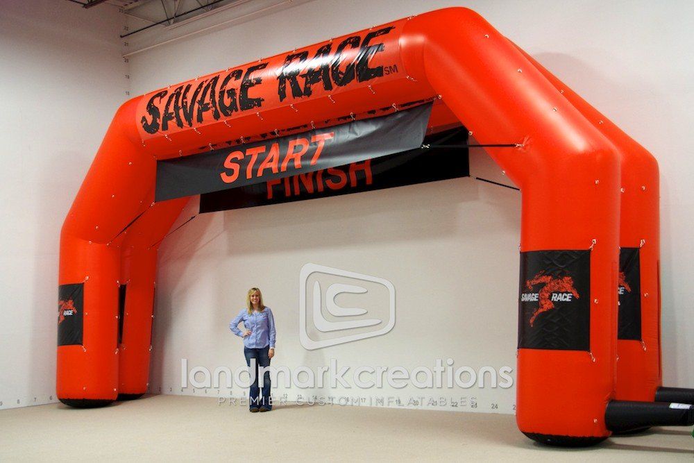 This inflatable archway for Savage Race, a treacherous mud and obstacle race, is used as the start and finish line for events in Florida, Georgia, Texas and more.