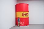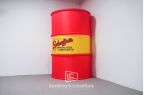 Schaeffer's Oil created a giant, fifteen-foot replica of their iconic oil drum to get noticed and reinforce brand recognition at outdoor community events.