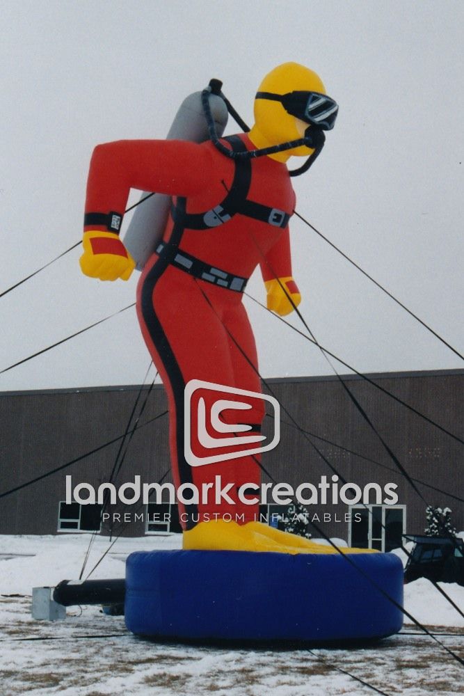 Need to promote an exhibit with an ocean or aquatic theme? This giant inflatable scuba diver stood 23 feet high and increased attendance to a local museum's large format film.