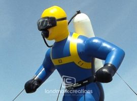 Need to promote an exhibit with an ocean or aquatic theme? This giant inflatable scuba diver stood 23 feet high and increased attendance to a local museum's large format film.