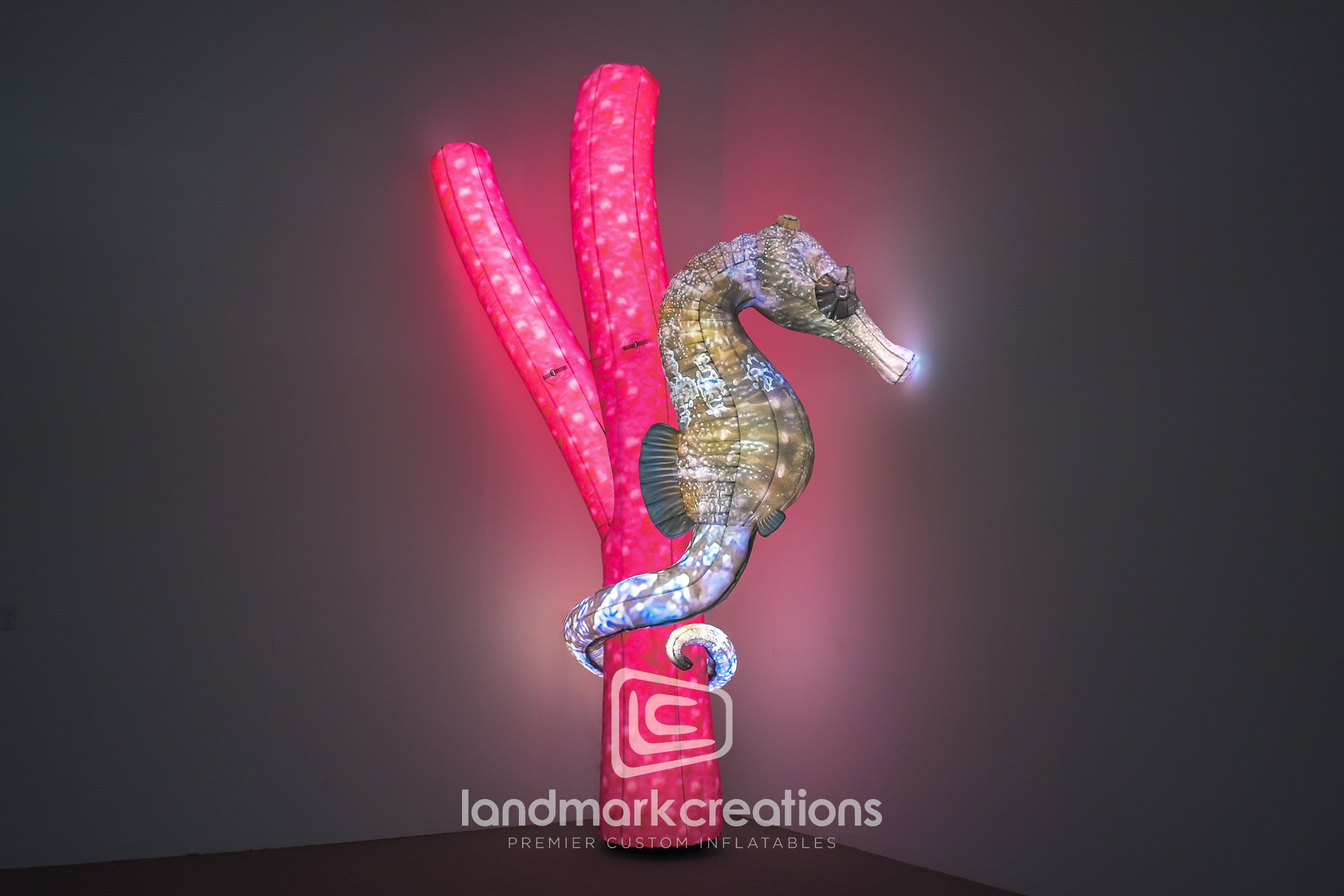 The vivid colors and art texture of this giant inflatable seahorse created an eye-catching display for guests at the Minnesota Zoo's "Nature Illuminated" exhibit.