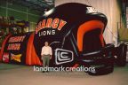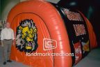 A local SONIC Drive-In purchased this giant inflatable football helmet with extension sports tunnel for the Searcy Lions. Local businesses are eager to sponsor inflatable tunnels because of the attention their advertising draws.