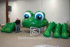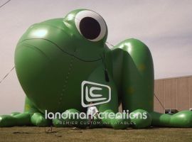 Make a statement with a giant inflatable rooftop mascot. This inflatable frog, designed for Señor Frog's Restaurants, adds a dramatic visual to their rooftop!