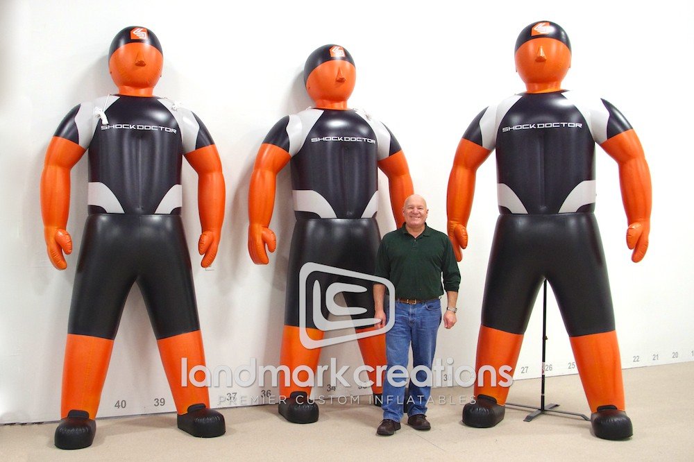 Shock Doctor, a leader in mouth guard technology and sports protection, inflates their orange athlete mannequins, decked-out in Shock Doctor gear, to attract attention during their Hardcore Protection Fearless Performance Tour.