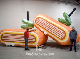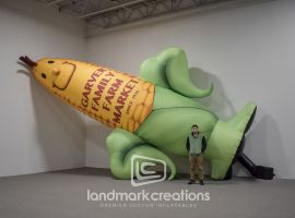 This impressive 20-foot custom inflatable corn replica, complete with intricate 3D kernels and realistic detailing, was designed for a theatrical marquee in Richmond, VA. Crafted by Landmark Creations for the Nederlander National Markets, it highlights our expertise in creating high-quality inflatable food replicas for special events and visual marketing.