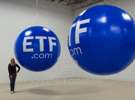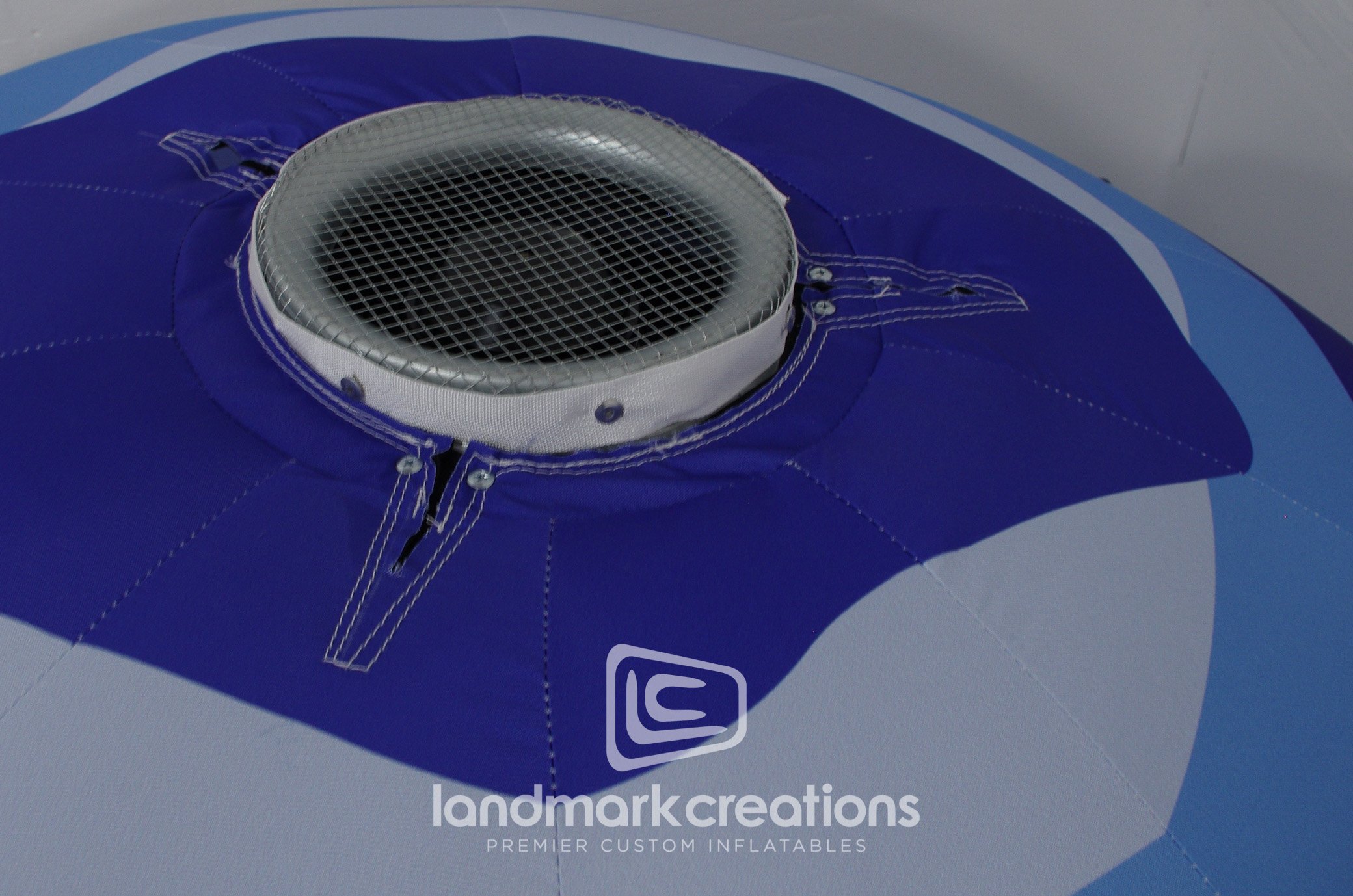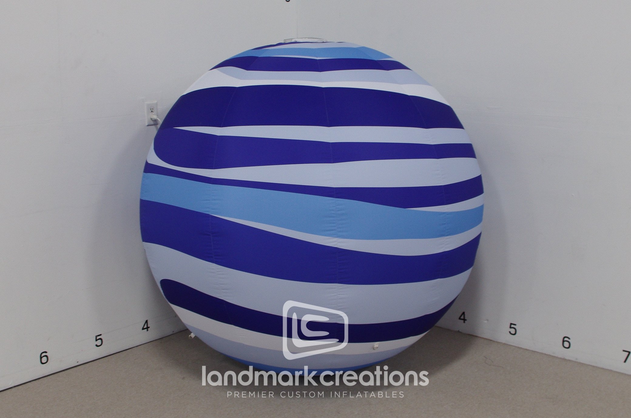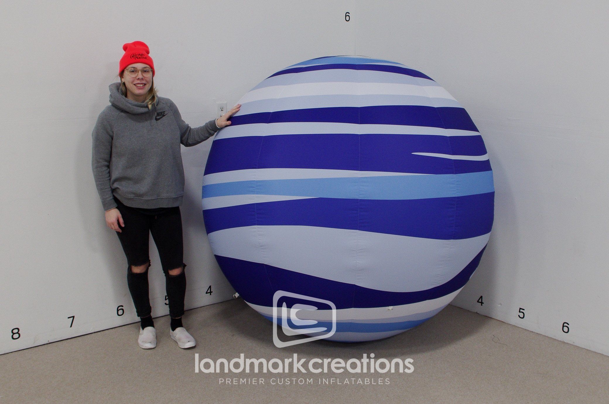 This custom inflatable planet was used along with the Shyft inflatable rocket ship in a creative trade show exhibit conceived by Nationwide Displays.