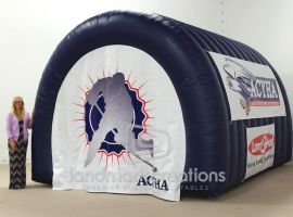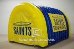 The Siena Heights Saints returned to the O'Laughlin Stadium in style with this custom inflatable sports tunnel. Traditional sports tunnels feature school logos on the exit door and provide lots of space for custom messaging on each side.