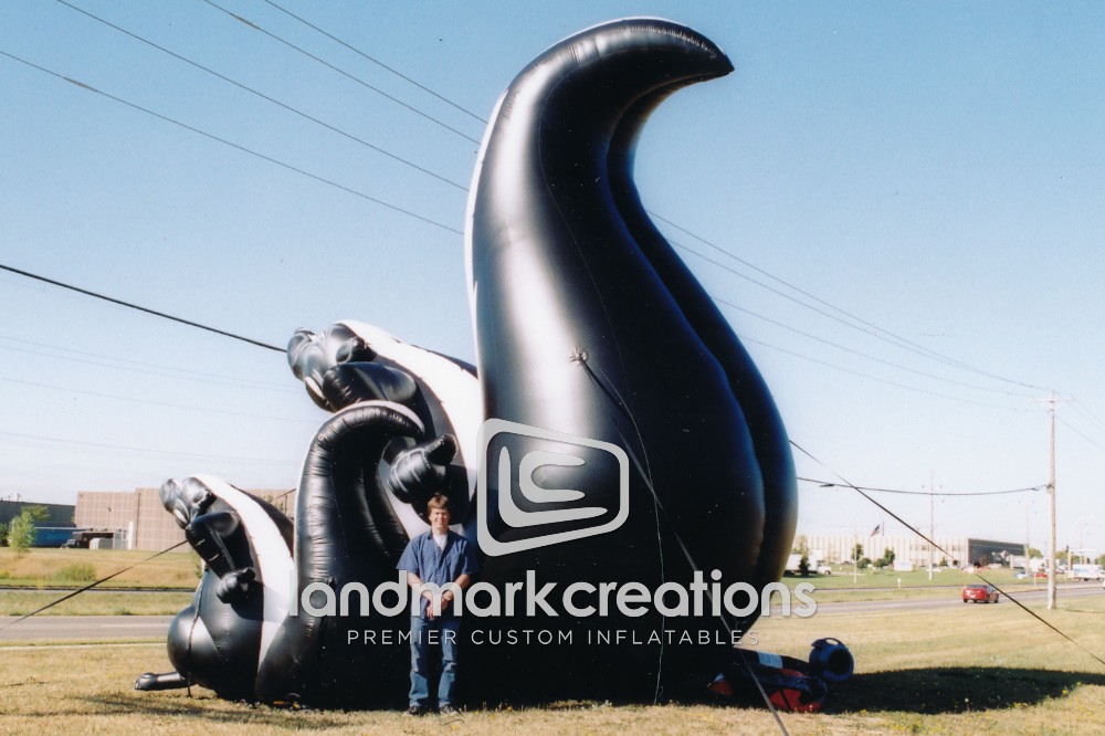 These inflatable skunks were used during mass demonstrations at H&M stores. The inflatable skunk attracted attention for the "H&M Stinks" demonstration while speakers accused H&M of running sweatshops.