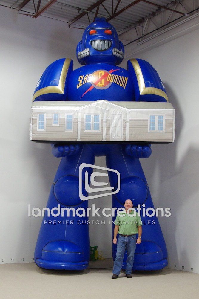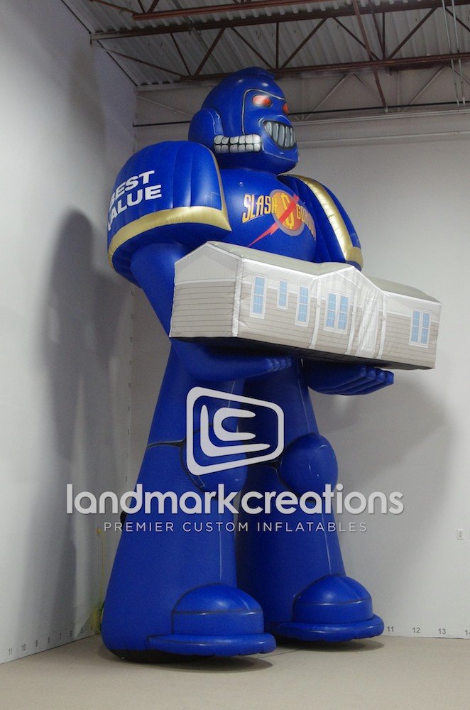 Looking for something unique that is bound to grab lots of attention? This mighty action figure holding a model manufactured home is pretty hard to miss. Clayton Homes uses multiple inflatables to tie-in with promotional themes for each of their product lines.