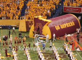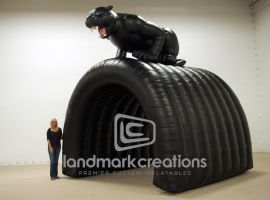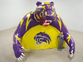 The Southwest High football team storms the field through their custom inflatable cougar football tunnel. The fierce cougar mascot replica inspires team spirit in both team players and the fans in the stadium.
