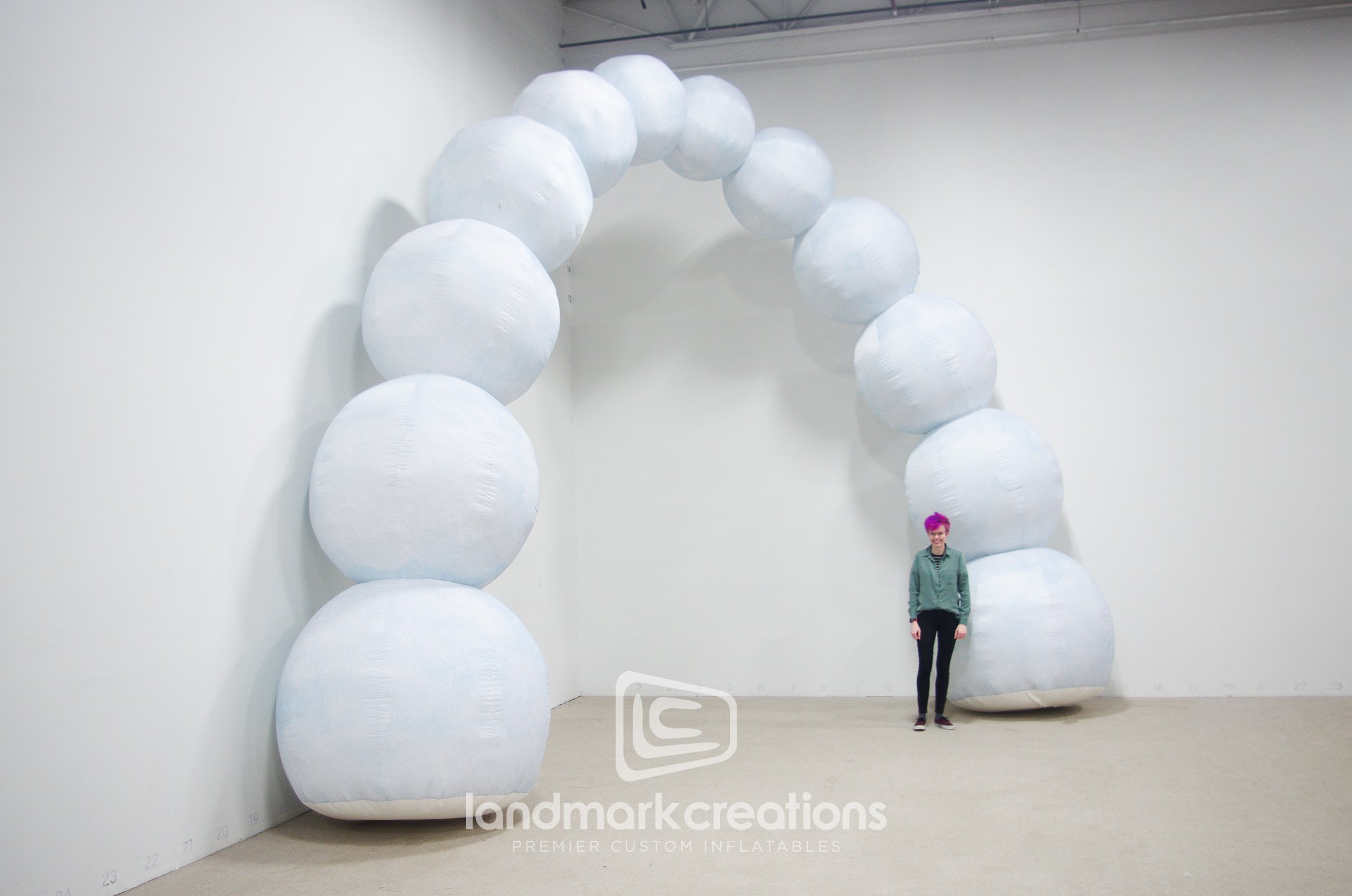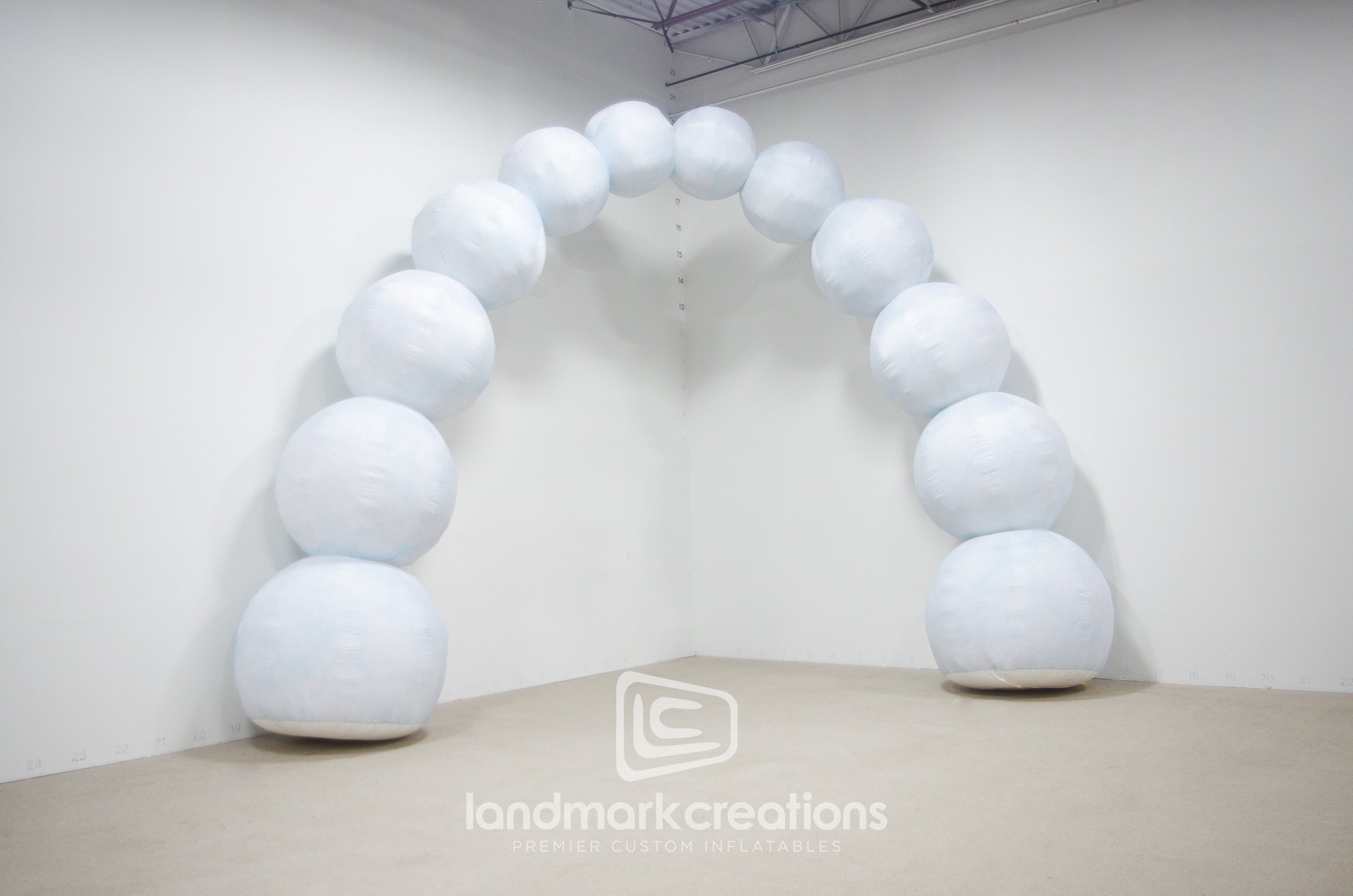 This inflatable snowball entrance arch is a natural centerpiece to welcome guests to a winter holiday or sporting event. Custom inflatable entrance arches can be designed to fit any style, theme, or motif. And since inflatables pack small, they're easy to set up, store and transport between events.