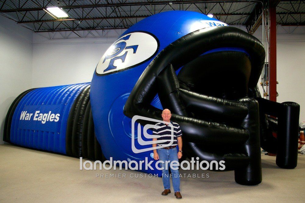 The South Forsyth War Eagles inflate their massive football helmet tunnel to excite fans during home games.