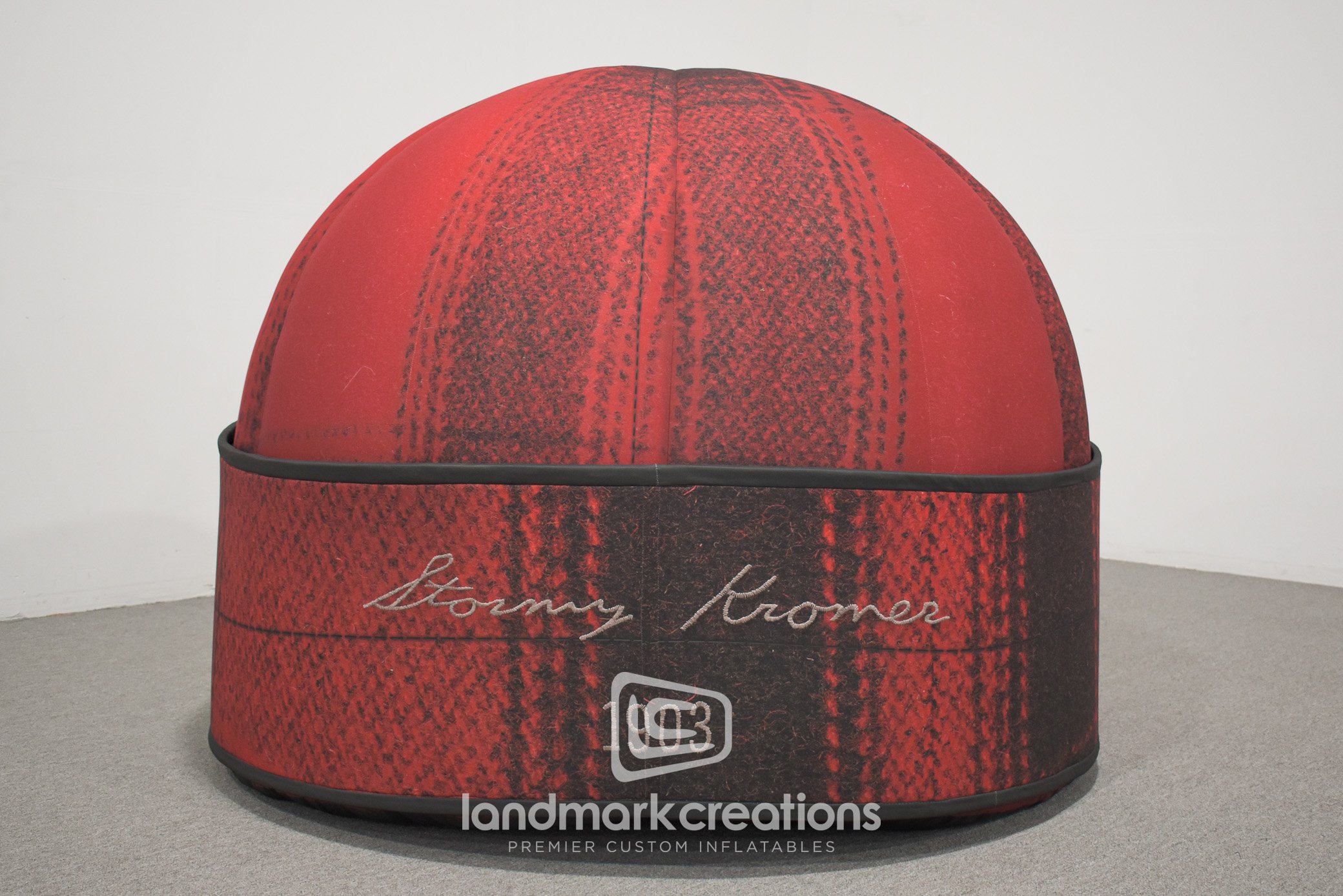 Stormy Kromer's giant inflatable replica of its iconic buffalo plaid hat makes a fun statement piece at community events like the Plaidurday celebration in Ironwood, Michigan. Inflatable replicas are a creative way to promote brands because they're easy to set up and transport, plus they create a fun photo opp for event-goers to promote your product or brand beyond the event.