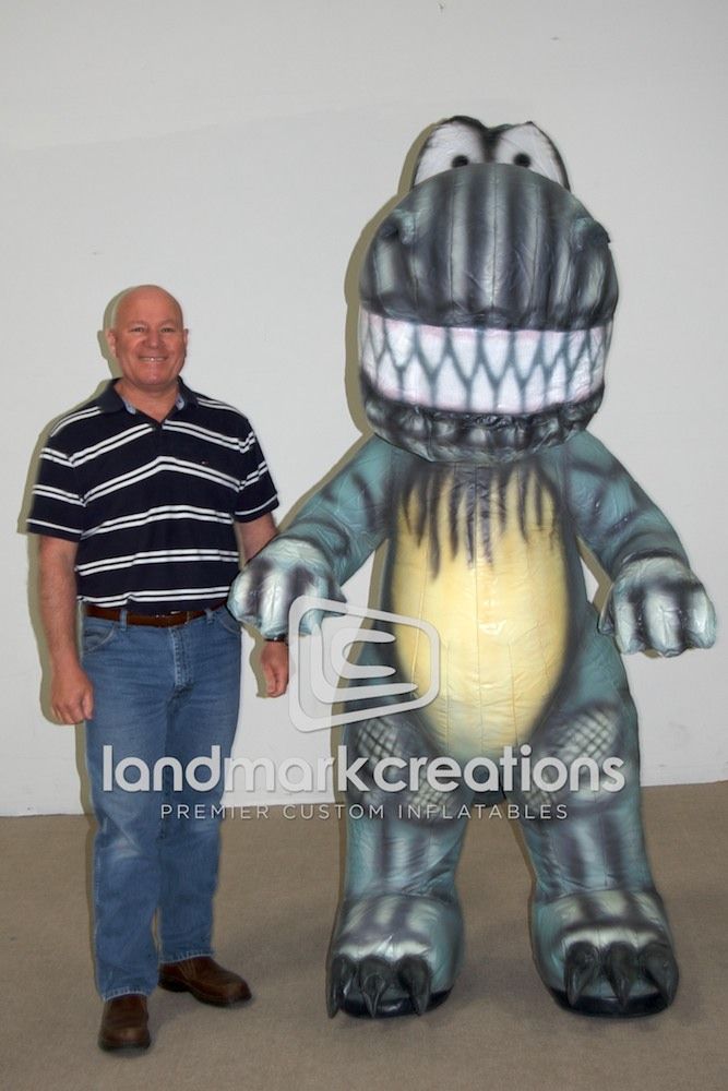 Turn your one-of-a-kind character into an inflatable costume and wow customers! This inflatable dinosaur costume is a fun addition to any marketing event.