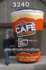 TravelCenters of America advertises TA Café Express, their selection of gourmet coffees, cappuccinos and hot chocolates, with this giant inflatable coffee cup.