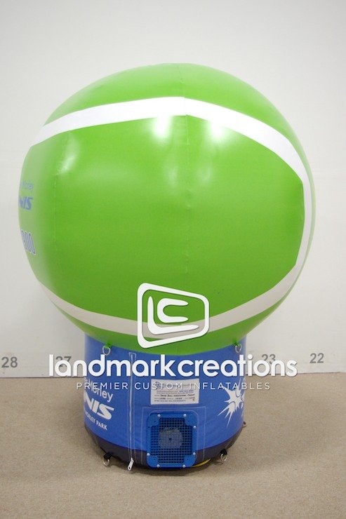 Christopher Morley Tennis, a top-notch tennis facility, advertises their many services by inflating this green tennis ball at a variety of marketing events.