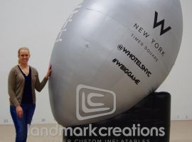 TEAM Coalition promotes designated driving at the Houston Texans' football games with this giant inflatable football placed on a pedestal.