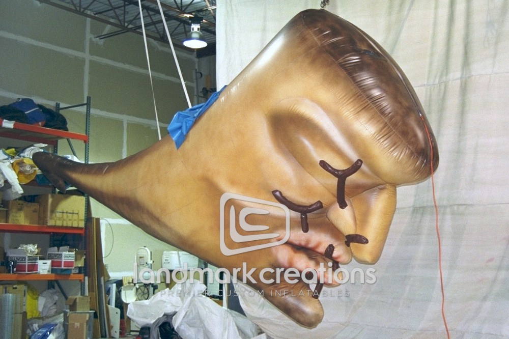 This giant inflatable replica of the iconic image from Salvador Dali's "The Sleep" commissioned by the L. Sausa Production Company creates a surrealistic visual.