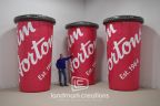 Want a delicious display to promote your new store? Tim Horton’s uses these giant, 12 foot tall replicas of their signature red and white coffee cups, causing caffeine cravings and foot traffic to their new locations!