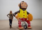 This inflatable monkey with cymbals was one of three vintage characters placed atop tricycles and pulled through the streets during the Charlotte Center holiday parade!