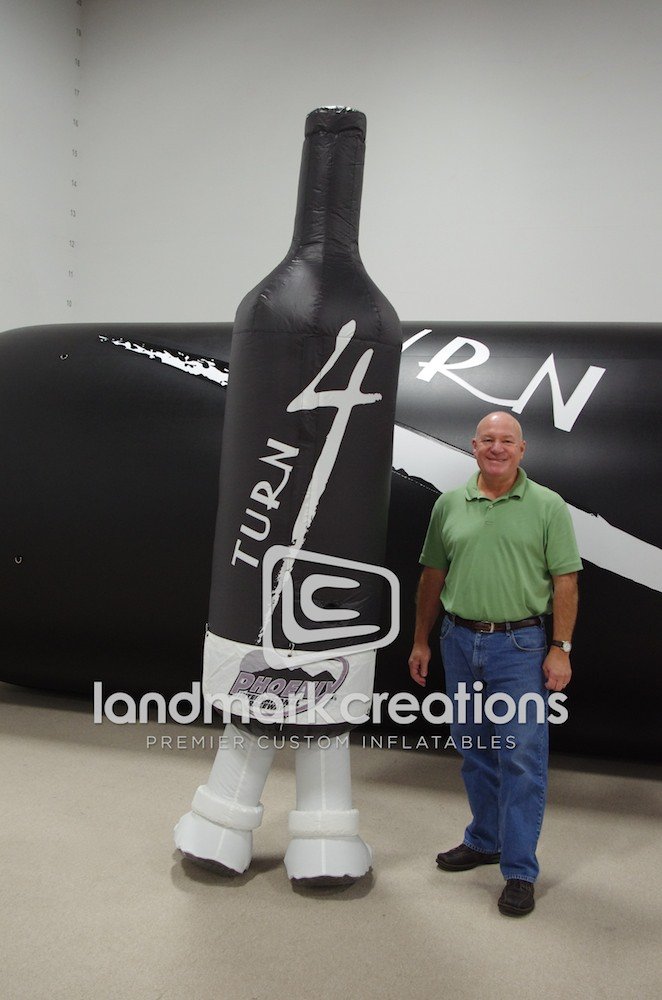The Bennett Lane Winery shakes hands and turns heads at events with their ‘Turn 4’ custom inflatable wine bottle costume.