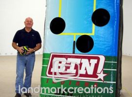 Looking for a way to engage students at athletic events? The University of Florida Health Communications department purchased this inflatable football toss to interact with UF students at athletic events.