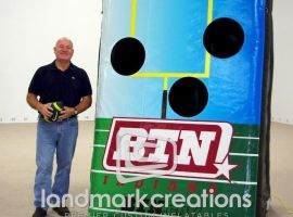 Looking for a way to engage students at athletic events? The University of Florida Health Communications department purchased this inflatable football toss to interact with UF students at athletic events.