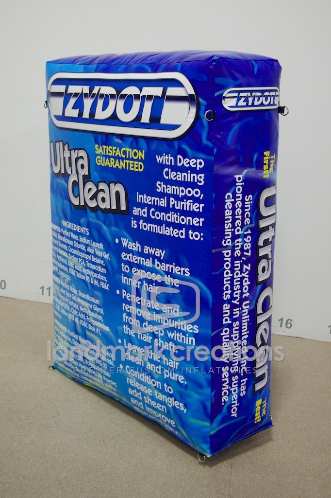Zydot promotes their Ultra Clean product, a hair detox treatment, by inflating this large replica at trade shows and marketing events.