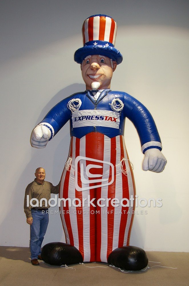 Need a way to increase visitors to your tax preparation location? Inflate a patriotic mascot like this Uncle Sam for Express Tax.